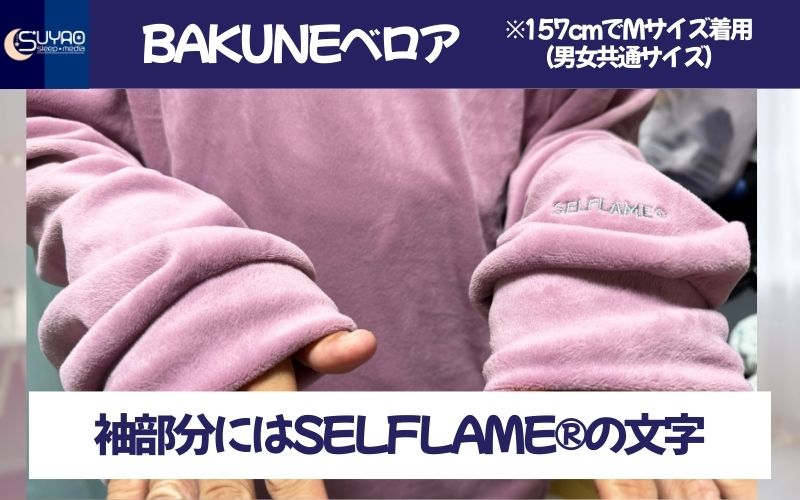 BAKUNEベロアの特長は、「BAKUNEシリーズ最高の保温性」「高級感のあるベロア素材」「SELFLAME®繊維によるリカバリー機能」の3つが融合している点です。真冬でも暖かく、肌触りが良く、疲労回復のサポートも期待できる設計になっています。