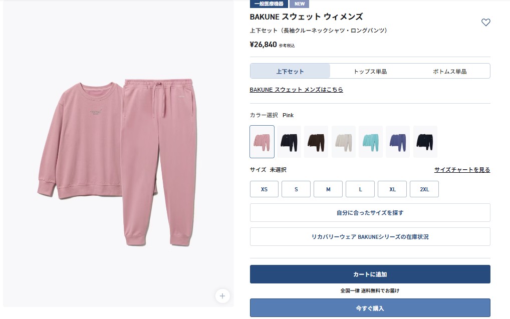 | 商品名 | BAKUNEスウェット ウィメンズ(上下セット) |