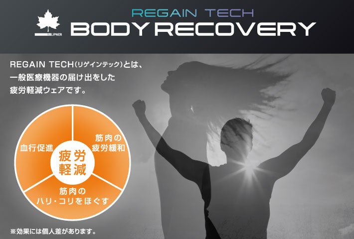 ロゴスリカバリーウェアは、特殊繊維「リゲインテック」を使用した一般医療機器認定の疲労回復ウェアです。